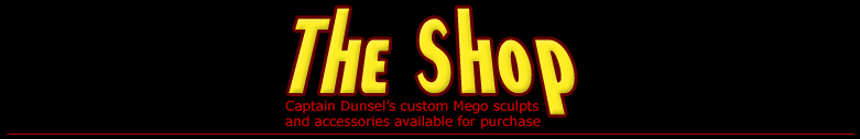 The storefront is gone and the Mego Madhouse is now a gallery and informational website only. To find past Dunsel sculpts for trade or sale, inqure in the Marketplace or Customs section at the Mego Museum Forums.